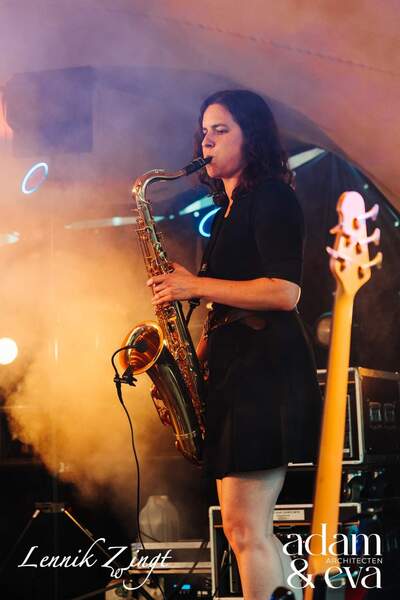 Super toffe bende! Het zijn echte spontane ambiance makers. Ondanks het slecht weer hebben ze toch mensen warm gekregen om te dansen.